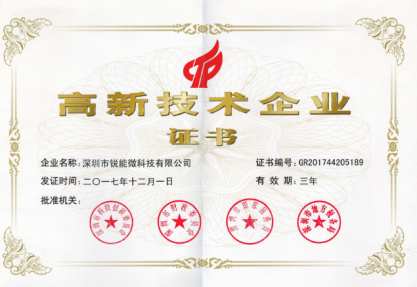 锐能微第二次获得“国家高新技术企业”称号