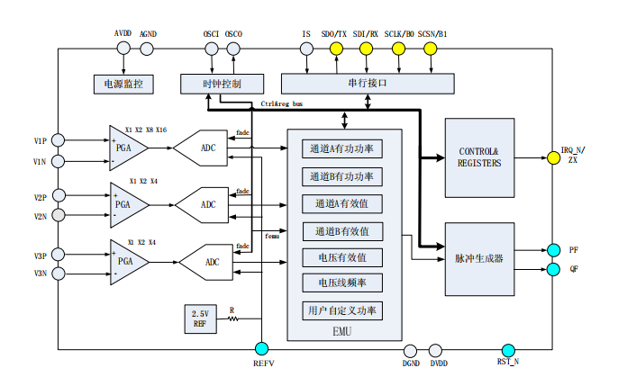 提供电压通道过零检测提供参考基准监测功能