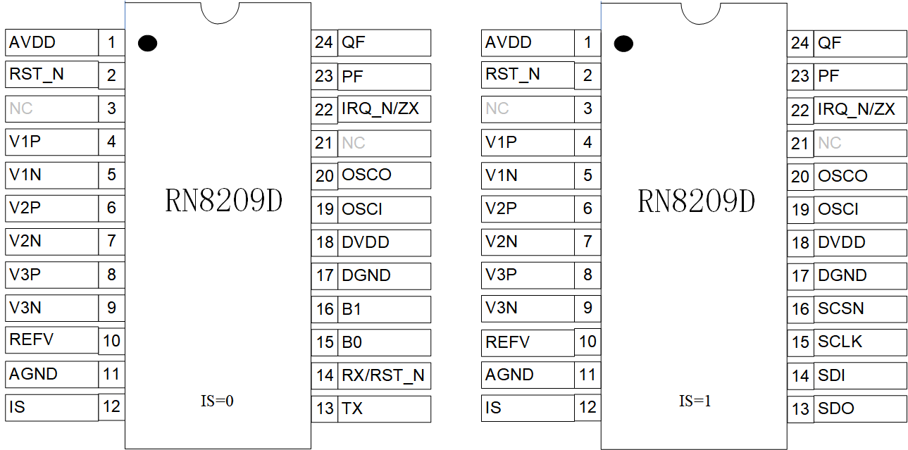 采用SSOP24(RN8209D)/SOP16L(RN8209C)/SSOP16L(RN8209E)绿色封装