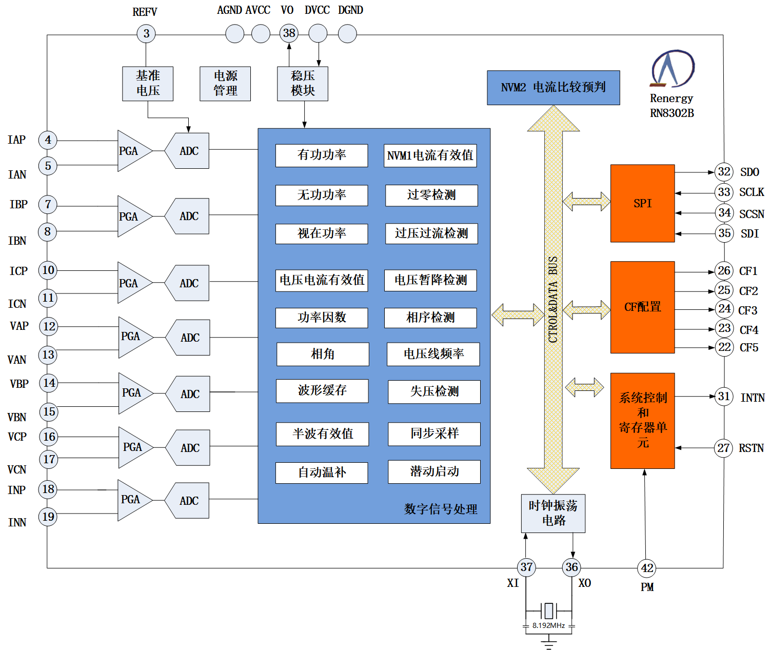 RN8302B有V3版和V2版两个晶圆版本,V3版软硬件向下兼容V2版,并且在功能和性能上做全面提升。V3版新增功能见以下红色字体标注内容。